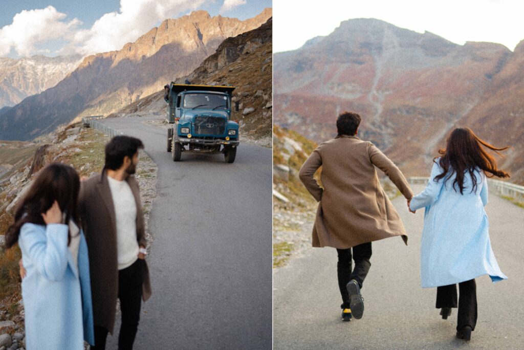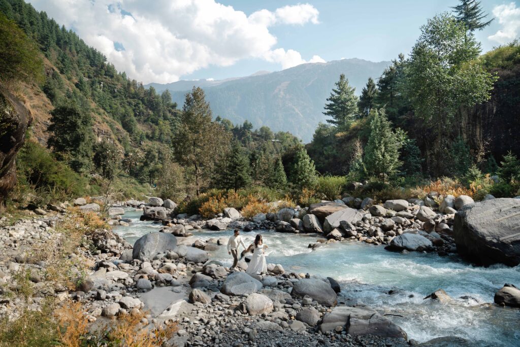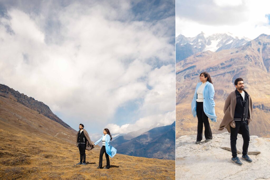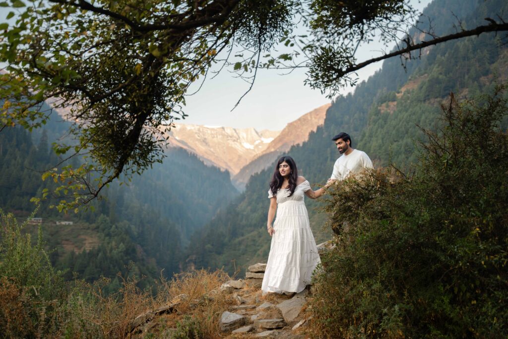 Set amidst the breathtaking landscapes of Manali, Karishma and Amrit’s pre-wedding shoot transforms into a cinematic journey of love, adventure, and timeless romance. Known as one of the most picturesque destinations for pre-wedding photography in Himachal Pradesh, Manali offers snow-capped mountains, pine forests, and serene valleys that create the perfect backdrop for love stories.